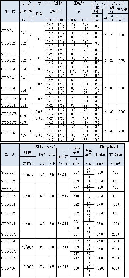 STD型仕様性能・寸法表