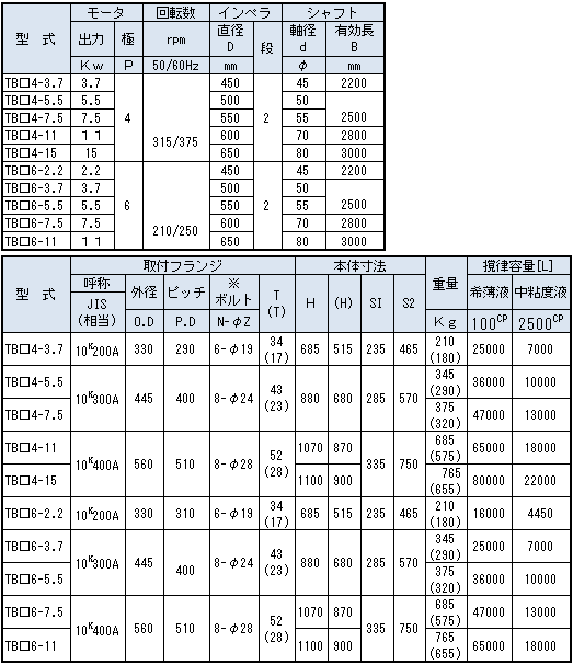 中速立形・TB型(ベルト減速駆動式):3.7Kw~15(6p:11)Kw 大型タイプ