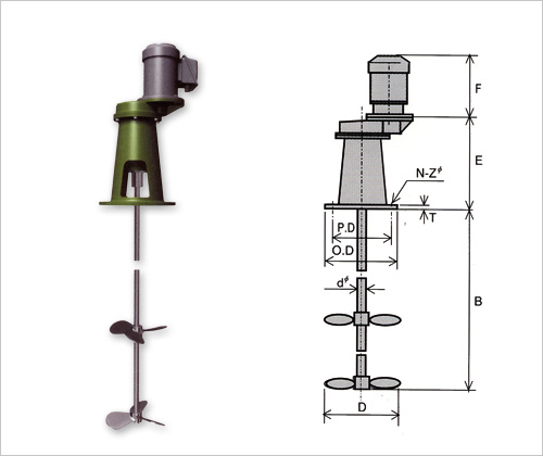 ギヤー1段減速の中速回転で最も汎用性のある、低・中粘度液の混合やスラリーの混合・溶解など広範囲に使用されているタイプです。◎減速ギヤーは強化プラスチック製で潤滑性、耐久性に優れています。